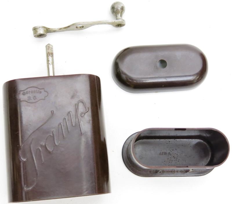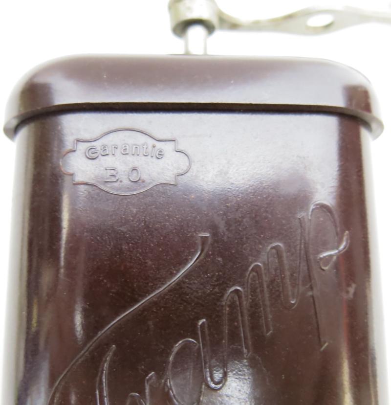 German Wehrmacht Reddish Bakelite Coffee Grinder Mint Condition Single BO Garantie Stamp.