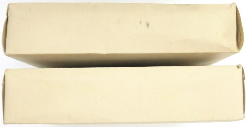 TWO boxes available, price is per ONE. Perfect for complete a Luftschutz Hausapotheke, add to a Medical Display, Collection, etc. Pre War and Wartime Civilian Medical stuff often, (Almost always), were undated, only stuff used by the Wehrmacht and related branches, (Para Millitary), was always dated. So, it is not rare to find this stuff often mixed with Wehrmacht stuff in the different boxes and pouches used. Remember they were not stupid collectors like us, they were at War and they used all what they had at the time. Box is 18 x 11,5 x 4 cms.