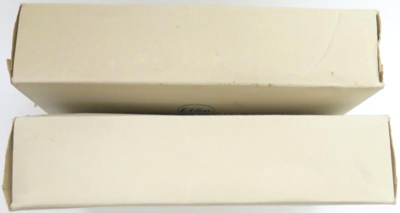 TWO boxes available, price is per ONE. Perfect for complete a Luftschutz Hausapotheke, add to a Medical Display, Collection, etc. Pre War and Wartime Civilian Medical stuff often, (Almost always), were undated, only stuff used by the Wehrmacht and related branches, (Para Millitary), was always dated. So, it is not rare to find this stuff often mixed with Wehrmacht stuff in the different boxes and pouches used. Remember they were not stupid collectors like us, they were at War and they used all what they had at the time. Box is 18 x 11,5 x 4 cms.