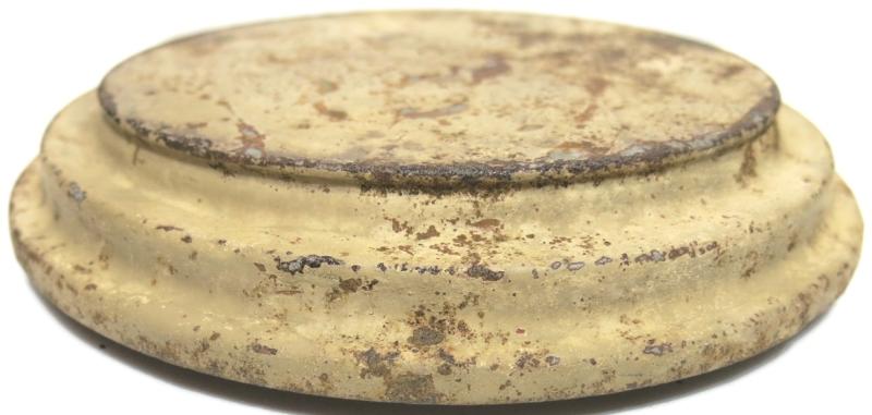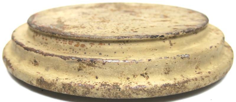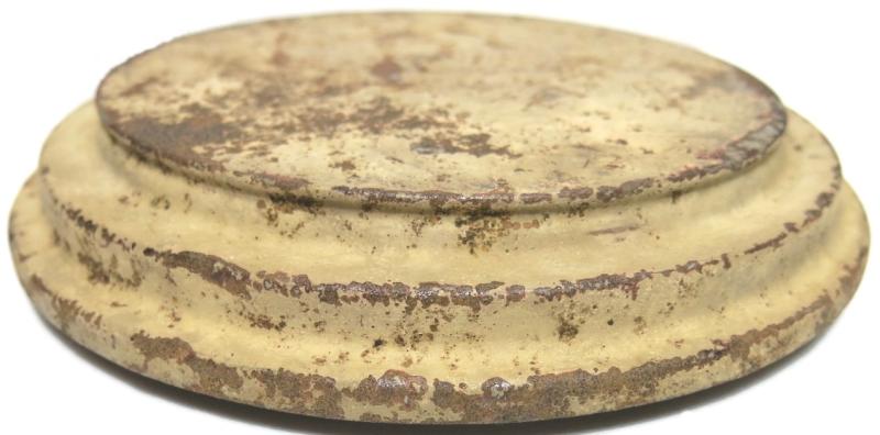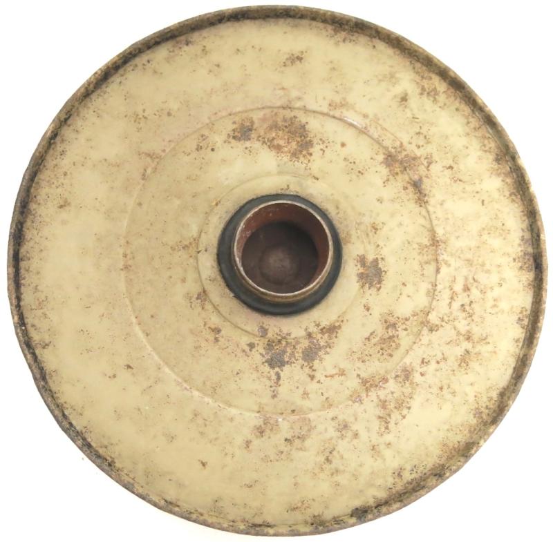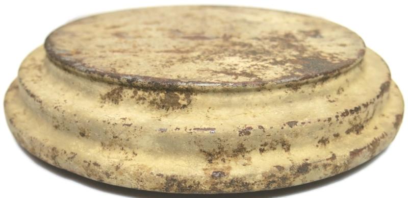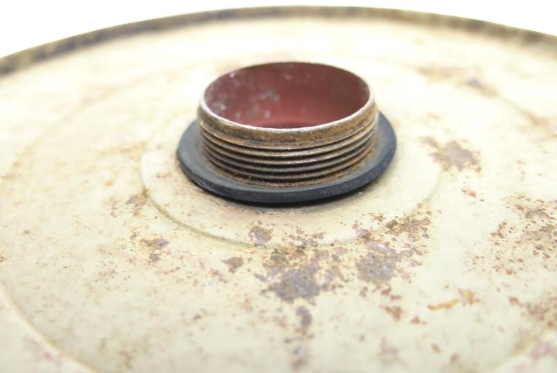 You don´t see this every day: NOT from water and NOT from ground pressure plate for the Teller Mine 43 Pilz in a wonderful and nice sand colour AND with the original washer still on place. Maker and dated bdn 1943. Hard to find spare part.