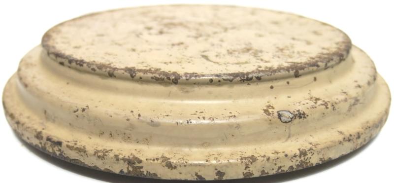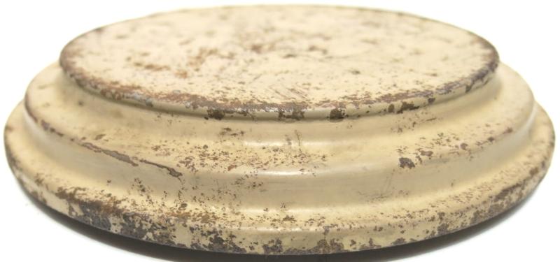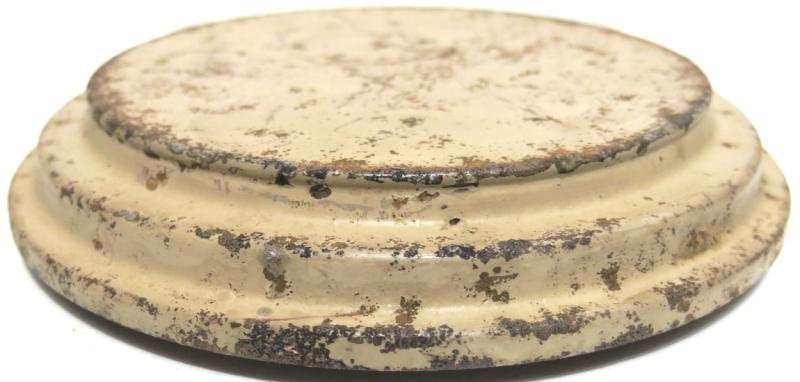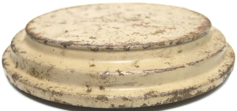 You don´t see this every day: NOT from water and NOT from ground pressure plate for the Teller Mine 43 Pilz in a wonderful and nice sand colour AND with the original washer still on place. Maker and dated ?uh 43. Hard to find spare part.