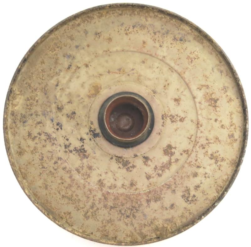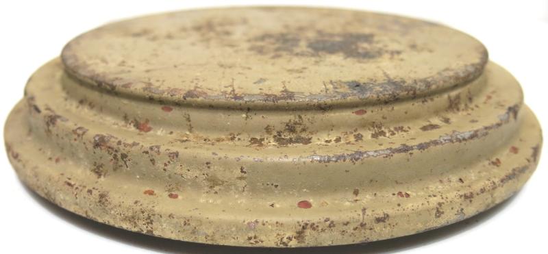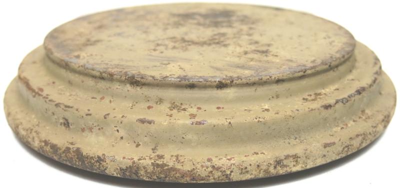 You don´t see this every day: NOT from water and NOT from ground pressure plate for the Teller Mine 43 Pilz in a wonderful and nice sand colour AND with the original washer still on place. Maker and dated bdn 1943. Hard to find spare part.
