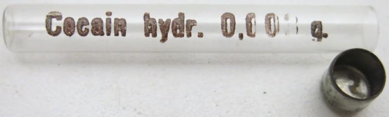German Wehrmacht Sanitär Small Glass Tube Cocain hydr. 0,003 g., EMPTY.