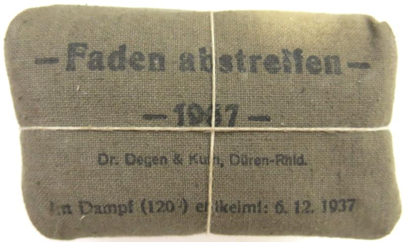 German Wehrmacht Medical Verbandstoff Verbandkasten Medium Size Field Dressing 1937, Not Mint, But Unused.