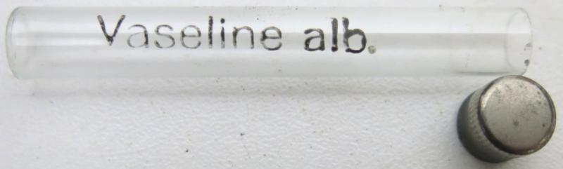 German Wehrmacht Sanitär Small Glass Tube Vaseline alb., Empty.