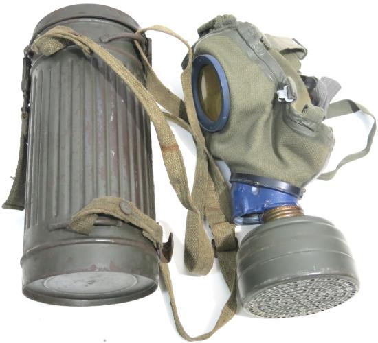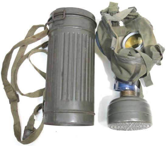 German Wehrmacht Combat Gas Mask Set Smooth End Can Variation 1944 100% Complete Condition.