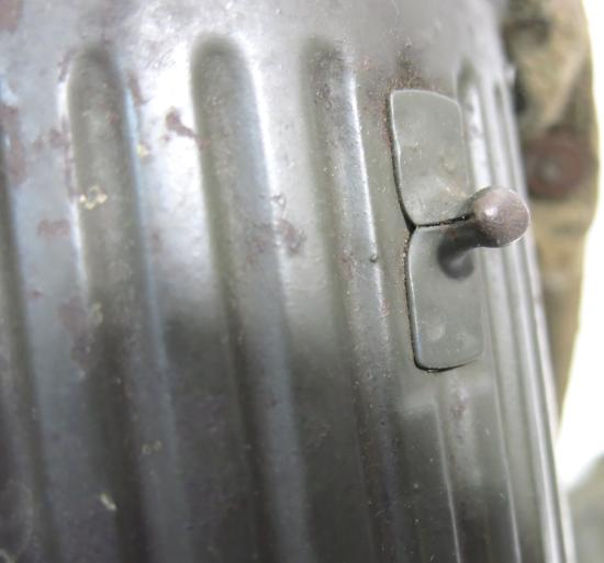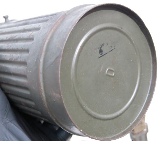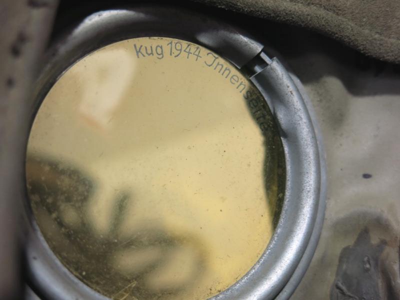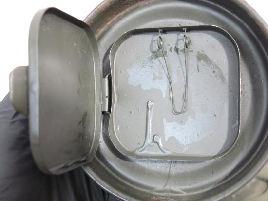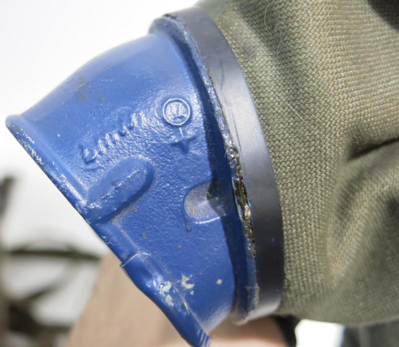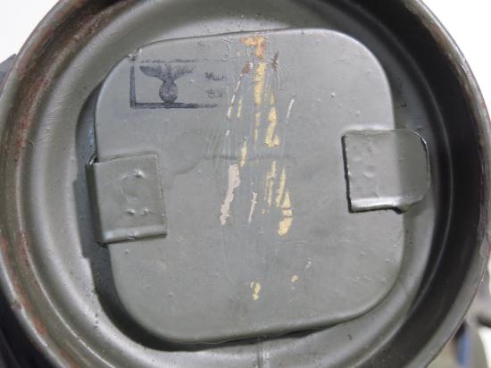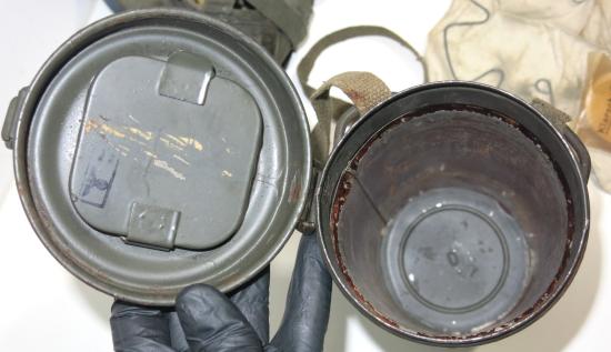 WOW, WOW, WOW, after 20 years collecting Gas Masks, this is only the very third time I have one of these ultra rare cans. The set was untouched, only missing the filter lid and the cleaning cloth. Very little is know about this rare variation, the three cans I have had were the same: No markings on the spare lenses lid box, a big D at bottom and WaA stamps on the can. This one has a red lacquer inside on the sleeve, but the one in my collection has not. And this one has the simplified knob on the closing device, mine has the normal one. A truly Holy Grail on the Gas Mask Collecting Field missing from 99% of collections.