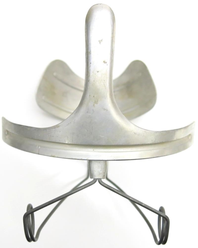 This item was used for help the masks to keep opened when out of the gas mask can. Nice piece of German engineering.