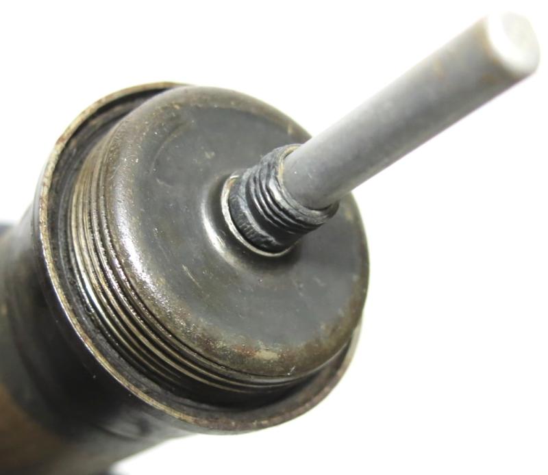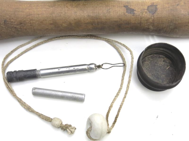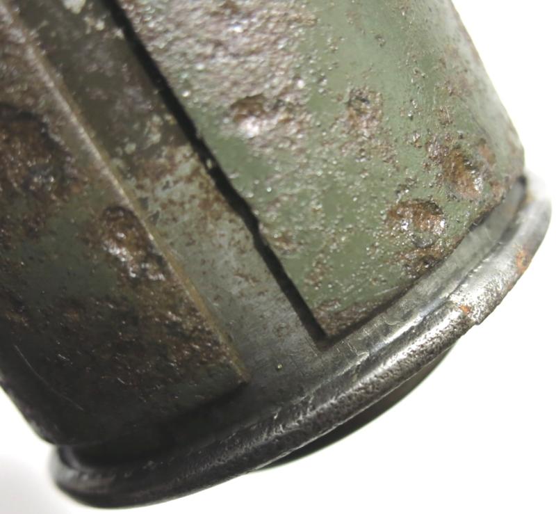 I got some nice, but not minty, M24s, so I took some of my remaining SS fragmentation sleeves original found at the SS North Division positions in Karelia for make a complete and affordable set. The M24 is not from SS, but found somewhere, they come from France. Can is dwx 44 maker marked and handle is wc 1944, late war was common to find them not matching, factory bombing, lack of materials and Soldiers having to install hundreds of fuzes and dets not taking care about the collectors 80 years later about taking the "matching" can for the handle. Can has been very well uncrimped and crimped back for remove all explo, that´s why it still has the complete detonator well. As usual, the set is 100% complete with inert Sprengkapseln Nr 8 and inert BZ39 fuze, pull cord and the end cap with cardboard disc. So, we have here a nice and 100% complete M24 with an original Waffen SS smooth fragmentation ring added, (I say "original Waffen SS" because it was found at the SS North Division Positions).