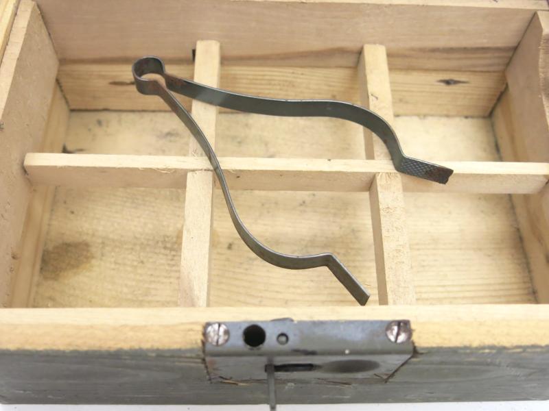 Super nice box, it contained 6 glass pots for take samples on gas places, normally ground. It is complete inside with the original tweezers, rack and all parts. Nicely stamped chr 4 so 1944 dated, remember that when you see only a 4, it means 44. Hard to find these days box and a must for every Gas Collector. Box is 25 x 16 x 12 cms.