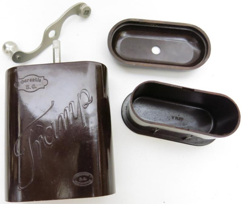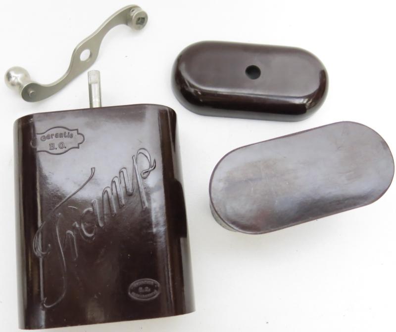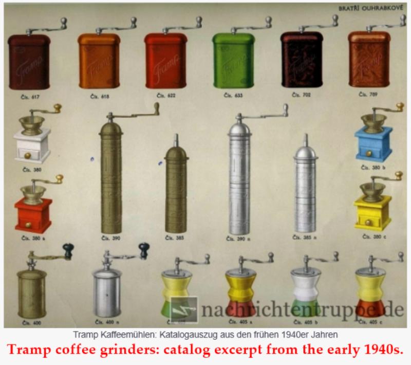 The link below is a complete study about these grinders, but it is in German and it has some contradictions on it, also it is really tought to read, so the final conclusion is that the Tramp grinders already existed in 1938, (Brand was founded in 1923), they were known and used in Germany, they were civilian stuff and NOT a Wehrmacht issue to the Troops, but many Soldiers used them as they used all kind of civilian stuff.