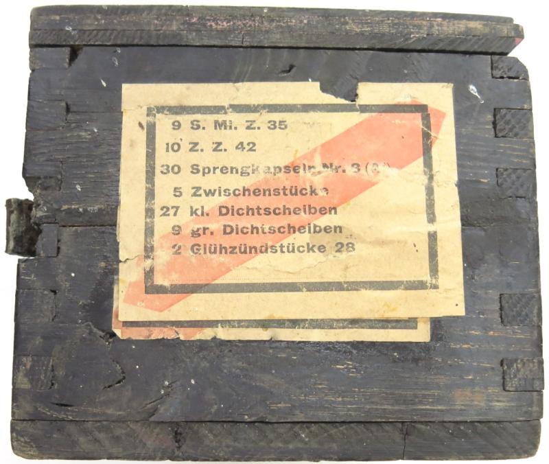 German Wehrmacht Zündmittel für je 9 S.Mi.35 Schrapnellmine 35 Spare Fuzes And Parts Box For 9 Mines, jtw 1943, Minty.