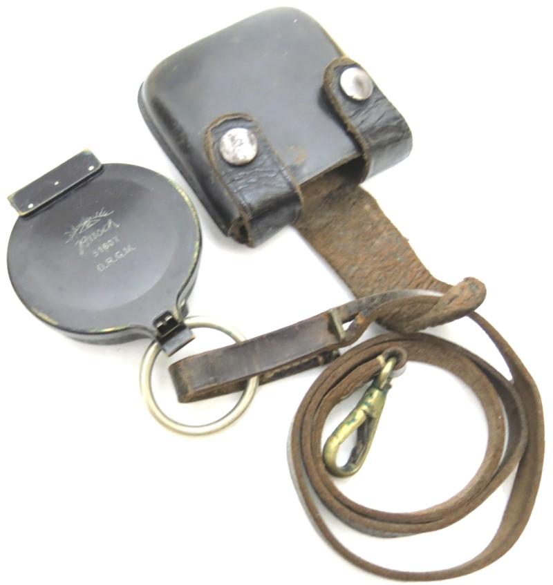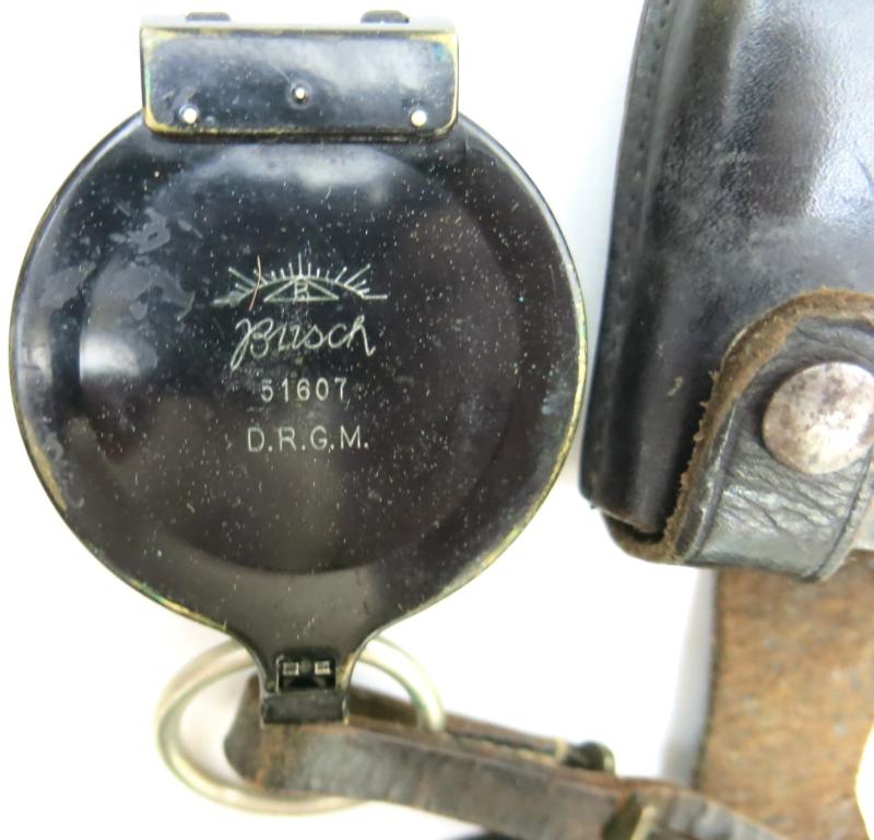 German Wehrmacht Marschkompass Marching Compass Busch 51607 D.R.G.M. Near Mint, Working And Untouched With Its Original Strap And Leather Sheath/Pouch.