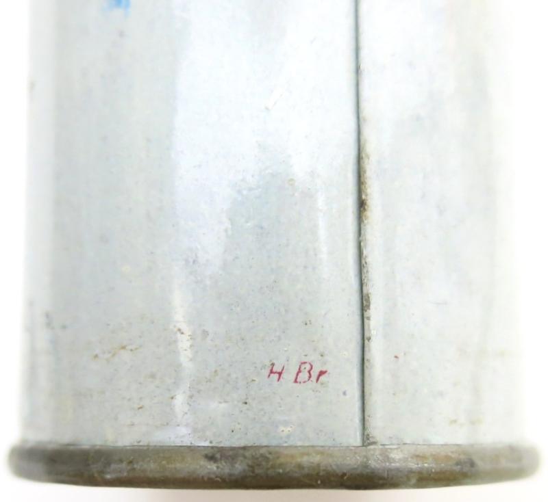 Very rare to find one of these dated. For fire wounds. Unopened and still sealed, (Obviously). These went into the Verbandkasten where you can read Brandbinde (Wismutbinde). These round pots were later introduced than the square ones in bare metal and named Brandbinde or Wismutbrandbinde. SO, you can use it for complete a Verbandkasten or a display or for collect them as themselves as I do.