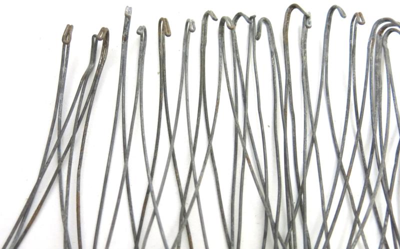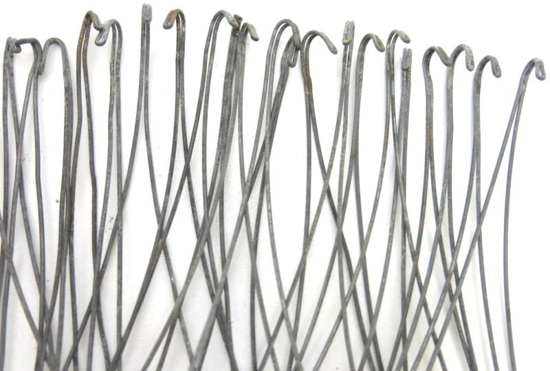 You will get ONE hook from the original factory box, price is for ONE hook, I know helmet wears two, but maybe you will need only one, so I decided list them individually, if you need two, then order two, or more until 30 hooks. If you take the 30 you will get the box for free. Needless to say how rare is to find them as a spare, and original ones, no repro. This is IMPORTANT: As all the hooks had some very, very small surface rust, I have cleaned them and tested the bending capacity, you can bend them without problems, doing it with love, of course you cannot start to move down and up many times because they will brake as all the wire will brake doing that. This is not soft wire, it has some resistance/hardness because it need to support the net in place.