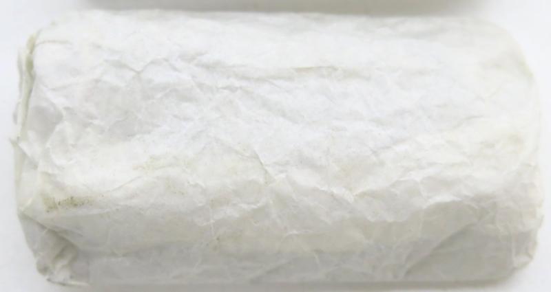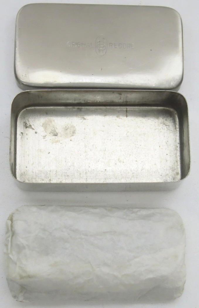This one is from my own collection. Mint never used and still with the wraping paper inside. Hard to find a real Wartime one. These 2 cc spritze came, for example, in the Hauptbesteck 1939. Also carried on another different boxes, etc. Also nice for your Medical/ Sanitäter display. Box is 8,5 x 4,5 x 2,5 cms.