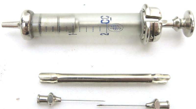 German Wehrmacht Medical 2 cc Original Record Spritze Syringe Complete Set Mint Unused In Metal Box.