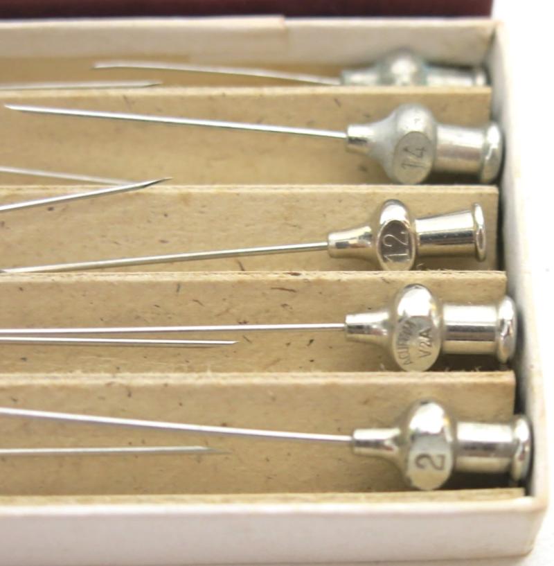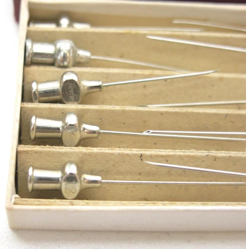 German Luftschutz Schachtel Mit 10 Injektionsnadeln Small Cardboard Box Of 10 Injection Needles Belonging to the Luftschutz Gastasche, Hard To Find.