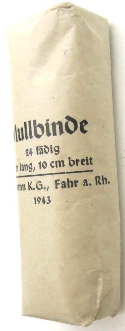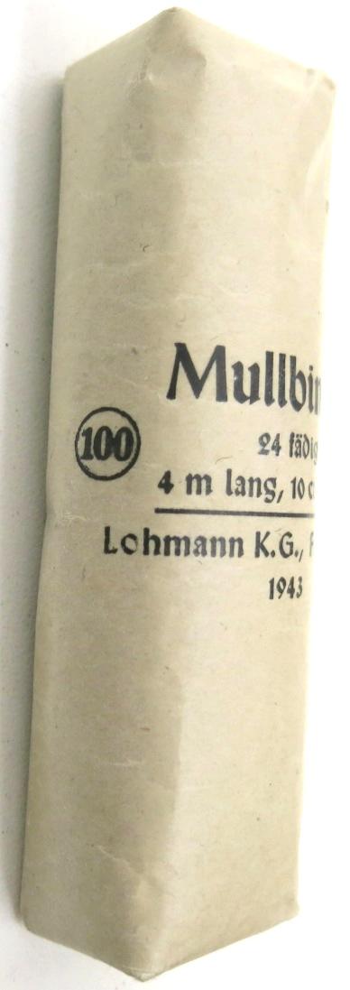 German Deutsches Rotes Kreuz D. R. K. And Luftschutz Hausapotheke Mull-Binde 4 m lang, 10 cm breit Lohmann K. G., Fahr a. Rhein 1943.