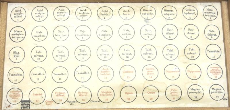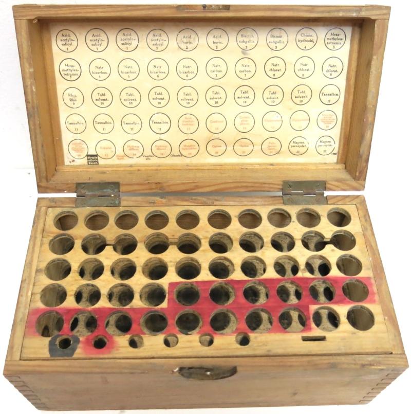 German Wehrmacht Einheitstablettenkasten Pill Box, Empty, But Complete With Rack And Label.